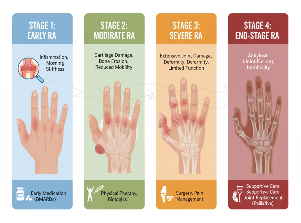 Understanding the 4 stages of rheumatoid arthritis is essential, but it is equally important to remember that modern rheumatoid arthritis treatment has drastically altered the natural history of the disease. With early diagnosis and the judicious use of disease-modifying rheumatoid arthritis medication and biologics, many patients never progress past Stage I or II. If you or a loved one are experiencing rheumatoid arthritis symptoms, seek medical advice immediately. Early action is the best defense against severe joint damage and the progression through these stages.